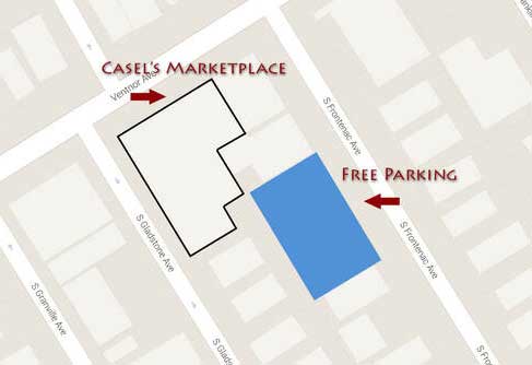 Casel’s offers a free parking lot, conveniently located on Frontenac Ave., between Ventnor and Atlantic Avenues.
